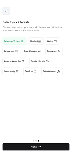 Robins AFB Connect is a mobile app that helps users discover events and connect with communities within Robins Air Force Base, making it easy to stay informed and engaged with base life.